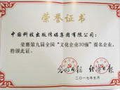 5月11日,在中宣部文化體制改革座談會上,光明日報社和經濟日報社聯合發布第九屆“文化企業30強”及提名獎獲獎名單。中國科技出版傳媒集團有限公司榮獲全國“文化企業30強”提名獎。